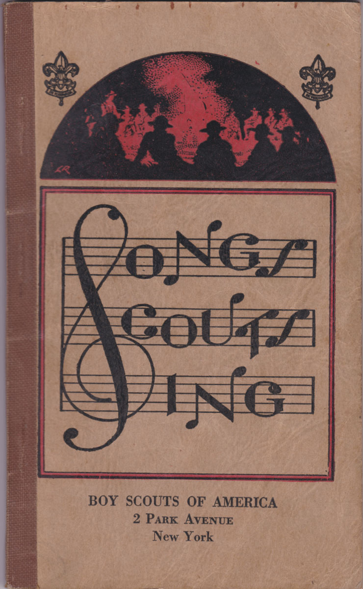 Fifth printing. Twelvemo. 115 pp; illustrated with musical notation. Illustrated stapled card covers with cloth tape spine. Over 220 campfire, hiking and jamboree songs for Boy Scouts.