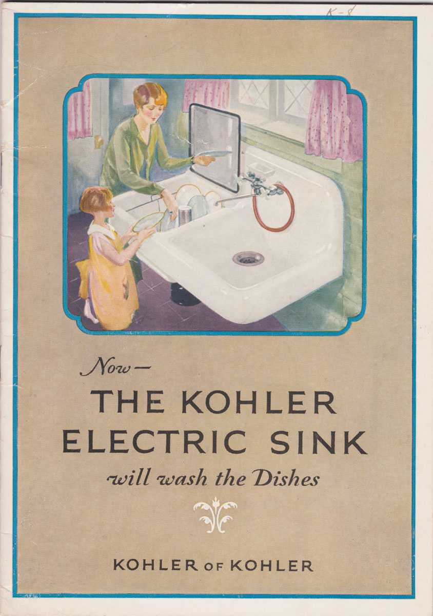 First edition. Octavo. 23 pp; numerous b/w photographs. Illustrated stapled wraps. VG, a clean, unmarked copy; covers clean with minor wear. Cover title: "Now-The Kohler electric sink will wash the dishes." Kohler introduced its electric sink in 1926. From title page, "Dedicated to women who do their own work; to women who direct the work of others; to women who do the work of others."