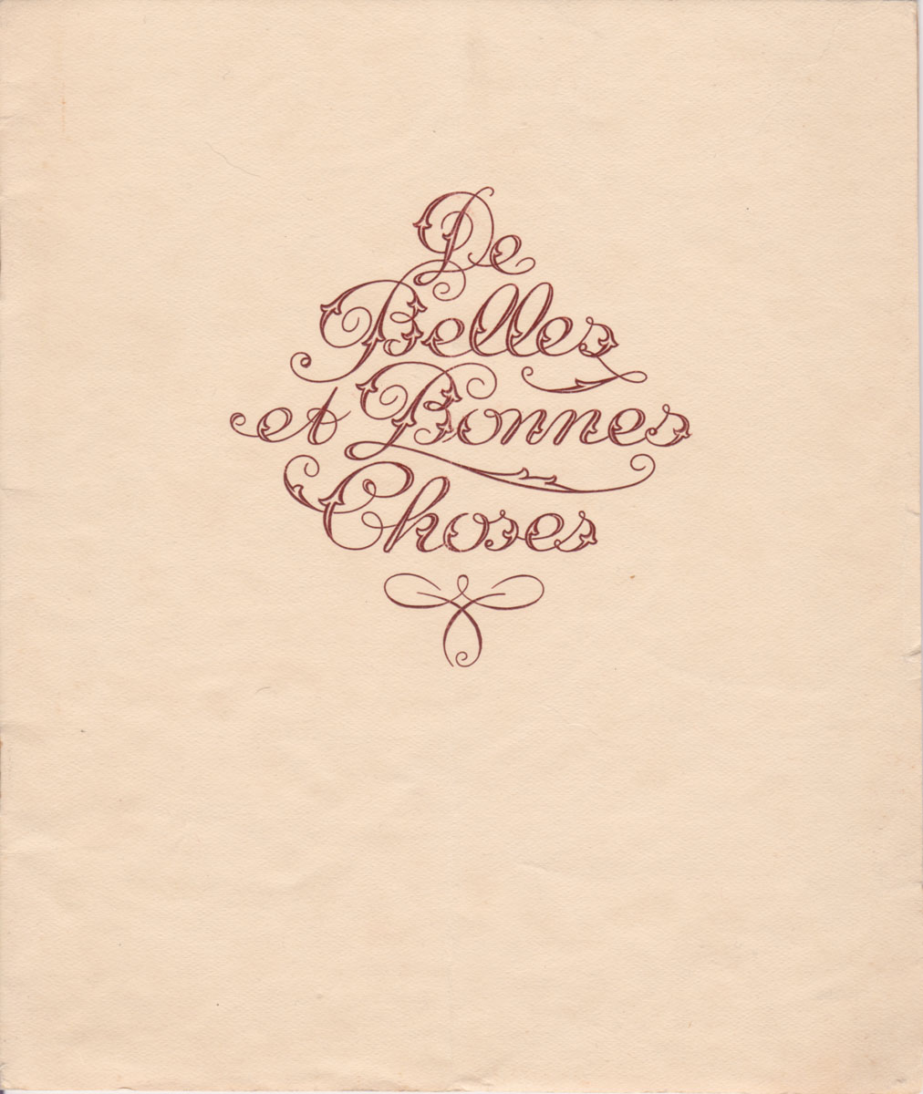 Octavo. [20] pp plus covers; sepia illustrations. Cream stapled wraps with embossed maroon lettering. VG, small edge tears, else clean & unmarked. Unused company order form & shipping information slip laid in.